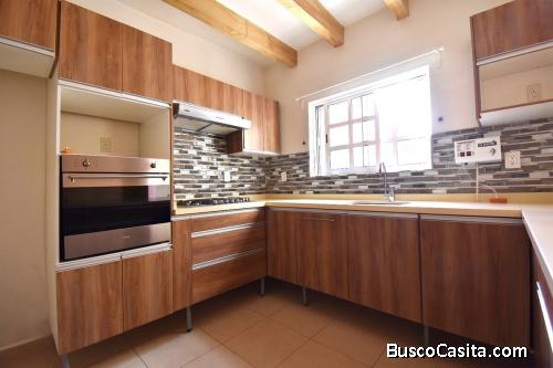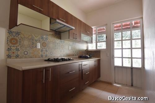 CASA UNA: Remodelada hace cuatro años, con una amplia estancia y zona de comedor. Cocina integral abierta muy grande con despensa. Recámara principal con vestidor y baño. Segunda recámara con closet. Segundo baño en el pasillo.