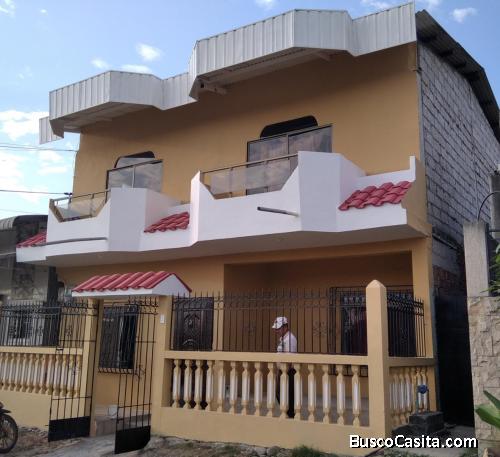 DESCRIPCIÓN...la casa es de 2 pisos tiene 4 dormitorios, 1 cuarto de estudio, 2 cocinas, 2 salas, 2 comedores, 2 baños, patio trasero amplio, lavandería, cisterna, cerramiento perimetral, luz, agua teléfono y alcantarillado lista para vivir.