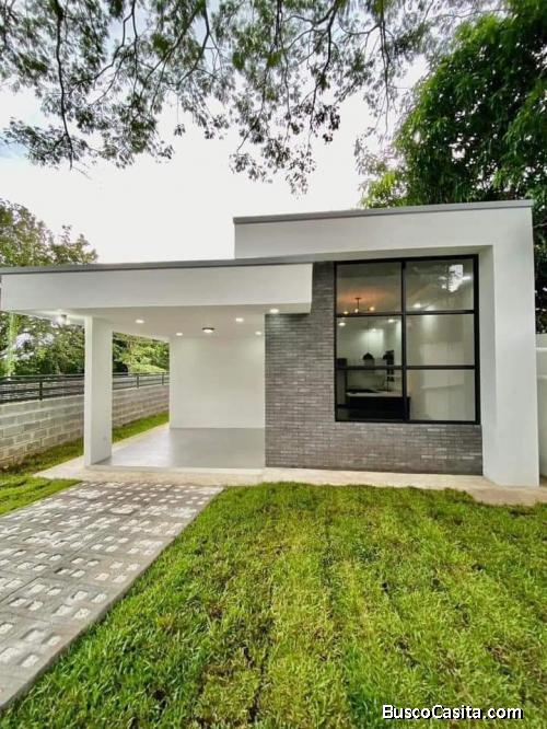 Se vende de oportunidad bellísima propiedad y casa nueva ubicada en la preciosa zona de Río Grande de Atenas, Alajuela, ubicada frente a calle publica de asfalto en cominidad privada, cuenta con el acceso a todos los servicios tanto públicos como privados y comerciales por ubicación tan privilegiada, esta a sólo 5 kilómetros del centro de Atenas y a solo 1 kilometro y medio de la ruta # 27, de tamaño la propiedad cuenta con 218 m2 y de fina y bella construcción cuenta con 97 metros, la casa es toda de block y esta terminada con los más finos y bellos acabados, también cuenta con 2 habitaciones, 1 baño completo, sala, comedor, cocina, cuarto de lavado, 2 terrazas, patio, cochera para 1 vehículo, también agua caliente en toda la casa, cierre perimetral con portón eléctrico, acabados de Altísimo nivel y más, todos sus documentos como plano, escritura y otros están al día, Atenas el lugar perfecto para vivir y disfrutar, ( junto a está propiedad existe otra similar en cuanto a terreno, belleza y elegancia que también está a la venta, digo esto por si alguien que cuenta con familia numerosa y siempre han vivido cerca o juntos lo sigan haciendo, es nada más que me soliciten el otro anuncio y con gusto se los paso, también al comprar las 2 propiedades se les puede mejorar el precio).