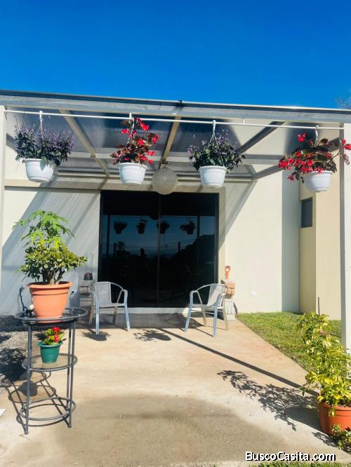 La casa tiene semanas de construida, cuenta con espacios verdes alrededor cuenta con 2 hab y 2 baños sala comedor y estacionamiento cubierto para dos vehiculos