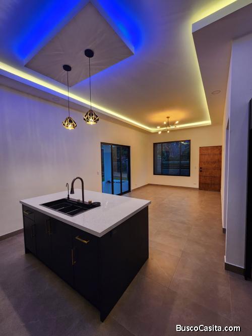 Se vende de oportunidad bellísima propiedad y casa nueva ubicada en la preciosa zona de Río Grande de Atenas, Alajuela, ubicada frente a calle publica de asfalto en cominidad privada, cuenta con el acceso a todos los servicios tanto públicos como privados y comerciales por ubicación tan privilegiada, esta a sólo 5 kilómetros del centro de Atenas y a solo 1 kilometro y medio de la ruta # 27, de tamaño la propiedad cuenta con 298 m2 y de fina y bella construcción cuenta con 130 metros, la casa es toda de block y esta terminada con los más finos y bellos acabados, también cuenta con 2 habitaciones grandes, 1 cuarto con walking closet, 2 baños completos, sala, comedor, cocina que incluye cocina vito cerámica y extractor, cuarto de lavado, 1 terraza, patio, cochera para 2 vehículos, también agua caliente en toda la casa, cierre perimetral con portón eléctrico, acabados de Altísimo nivel y más, todos sus documentos como plano, escritura y otros están al día, Atenas el lugar perfecto para vivir y disfrutar, ( junto a está propiedad existe otra similar en cuanto a terreno, belleza y elegancia que también está a la venta, digo esto por si alguien que cuenta con familia numerosa y siempre han vivido cerca o juntos lo sigan haciendo, es nada más que me soliciten el otro anuncio y con gusto se los paso, también al comprar las 2 propiedades se les puede mejorar el precio).