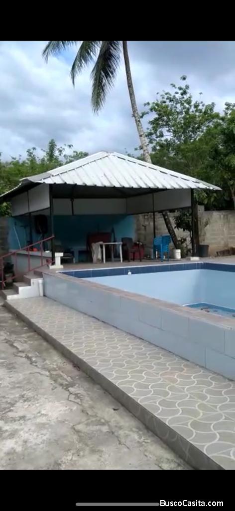 Casa 2 niveles de venta en BONAO,2 habitaciones, 2 baños, salón grande, kiosco, piscina con doble entrada de agua, Luz y agua potable, 2 tarea, masipedro arriba, papelea de compra. Precio 9millones.