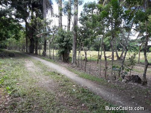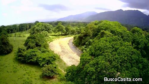 45 tareas deslindadas, 8 millones, rio hermoso la bordea , canal limpio también., algunos frutales, llana completa, buen acceso a 5 minutos de la autopista