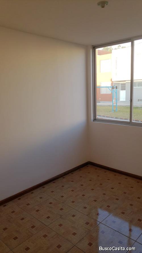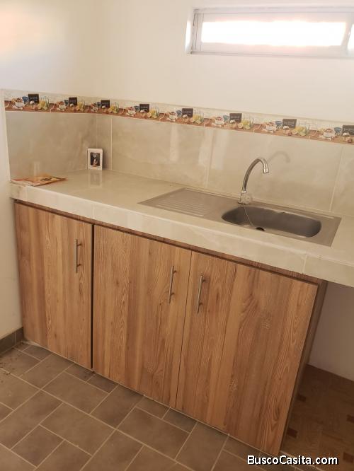 Casa por estrenar en conjunto privado con seguridad 24 horas, tarjeta magnética de ingreso al conjunto, área verde, dos dormitorios con closets, mueble alto y bajo de cocina, patio trasero con piedra de lavar.