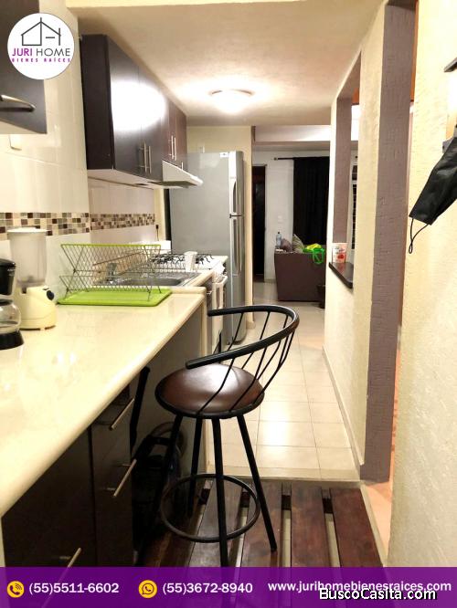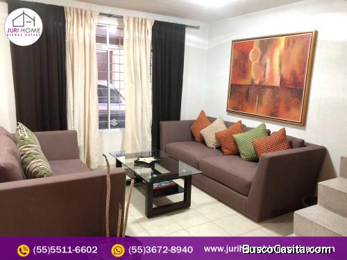 Consta de dos niveles, Sala, Comedor, Cocina con cocineta Integral, estufa de gas de 4 hornillas con horno y dos barras desayunadoras, 3 recamaras cada una de ellas con baño completo con mosaico y lavabos modernos y una de ellas con vestidor, un medio baño, estudio, terraza, tinaco con capacidad de 1,200 litros, Tanque de gas estacionario de 300 litros, estacionamiento para una camioneta o automóvil, jardín, patio de servicio, ventanas con persianas y vidrios completos, lámparas y piso de loseta en toda la casa.