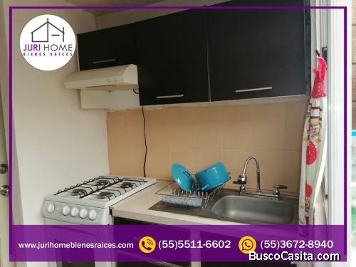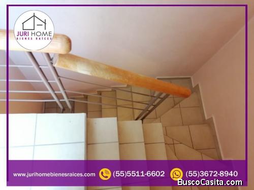 Planta Baja: Espacio para Sala, Cocina con Cocineta Integral, Tarja, estufa y campana, un medio baño en la entrada, espacio para comedor con mesa para cuatro personas, un cajón de estacionamiento, zotehuela, área de lavado con lavadero, jardín, y un cajón de estacionamiento boiler, dos tambos y un tanque de gas.