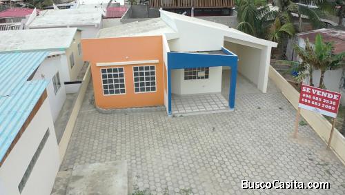 Es una vivienda totalmente nueva, espaciosa y segura, muy cerca de la playa, tiene 1 habitación master (con baño), y 2 habitaciones con baño compartido, todas las habitaciones incluyen closet, amplia sala/comedor y cocina con anaqueles bajos, lavandería, porche y garaje con cubierta, un área de terreno de 270m2.