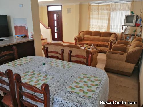 En la ciudad de Cotacachi provincia de Imbabura se vende casa, dispone de todos los servicios básicos, agua, luz, internet, teléfono, amplia, acogedora, con dos baños completos, un baño social, rejilla de protección en la sala, conexiones para lavadora, domo tragaluz en lavandería, armazón para calefón y tanques de gas, garage, jardín, patio posterior, mobiliario de cocina, closets, no se paga alicuotas, ni mensualidades, la casa tiene su acceso privado por la vía pública, se encuentra cerca a la Empresa Eléctrica, Colegio, vía principal hacia el norte de la provincia