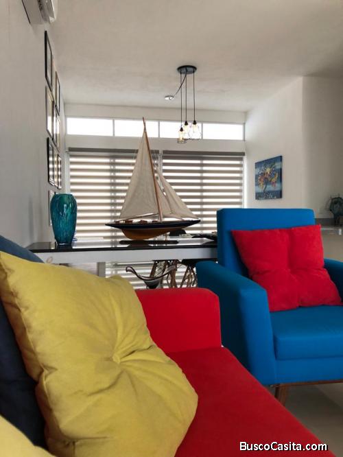Exclusiva casa con espectacular vista al mar caribe. Cuenta con cochera techada para 1 vehículo, sala, comedor, cocina amueblada con barra, mesetas de granito, 2 recámaras, 2 y ½ baños, lavandería, terraza, jardín, balcón, cristal templado en la ducha de baño, acabados de primera, pisos de porcelanato