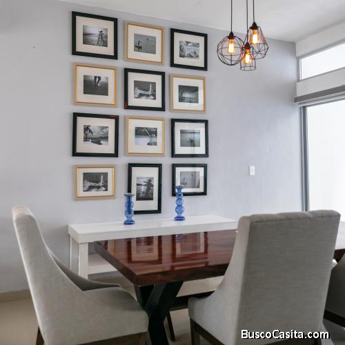 Cuenta con cochera techada para 1 vehículo, sala, comedor, cocina amueblada con barra, mesetas de granito, 3 recámaras, 3 y ½ baños, lavandería, terraza, jardín, balcón, cristal templado en la ducha de baño, acabados de primera, pisos de porcelanato