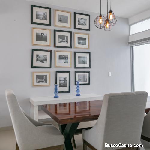 Cuenta con cochera techada para 1 vehículo, sala, comedor, cocina amueblada con barra, mesetas de granito, 4 recámaras, 4 y ½ baños, lavandería, terraza, jardín, balcón, cristal templado en la ducha de baño, acabados de primera, pisos de porcelanato.