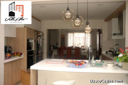 • Cocina con desayunador, muebles altos y bajos.