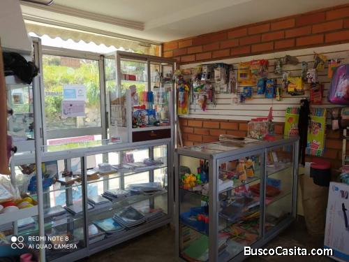 negocio con vitrinas de vidrio- congelador para helados- artículos de bazar y papelería.