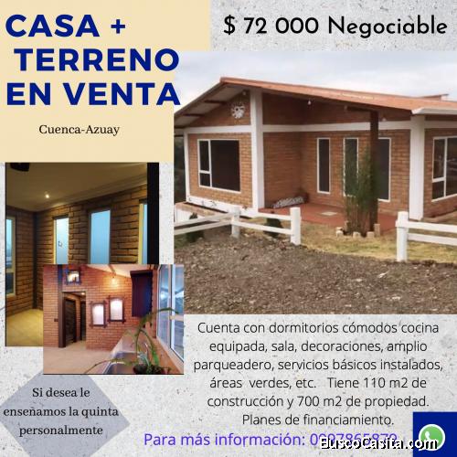 Es una quinta con dormitorios, con baños, areas verdes, parqueadero. Los servicios básicos están instalados. Tiene una hermosa vista. Los acabados son de estilo rústico. Ubicado en una zona tranquila de Tarqui.