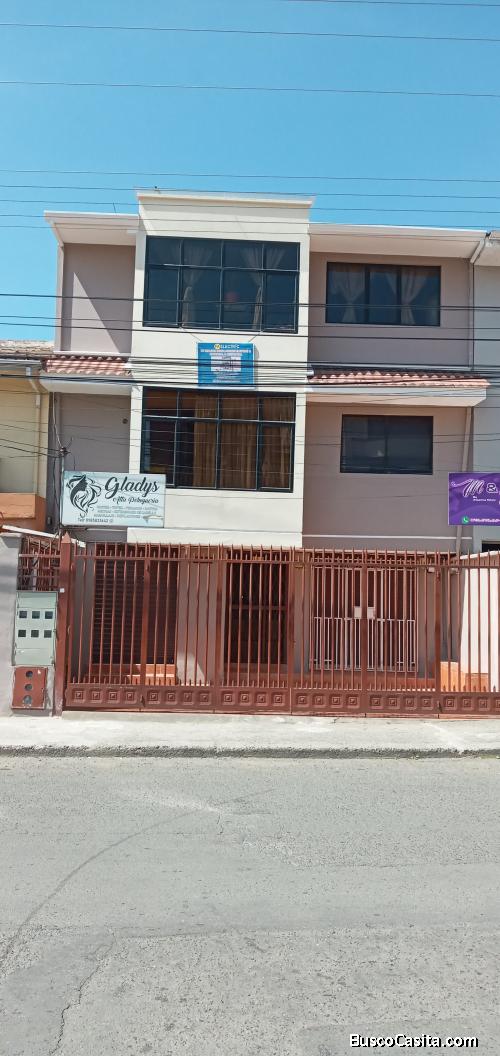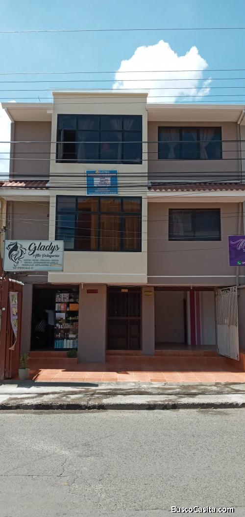 Vendo hermosa casa rentera ubicada en la Ave. Amazonas 189 y Ave. Unidad Nacional en una zona comercial en el sector los senderos cerca de la Feria Libre con accesibilidad a todo medio de transporte y centros comerciales. El inmueble consta de dos locales comerciales cada local tiene 1 baño individual, además consta de parqueadero para dos carros, un estudio totalmente privado con cocina y baño. Un cuarto con cocina incorporada de inducción y lavadero de platos, con acceso a baño y un cuarto habitacional con opción a utilizar el mismo baño. Todo lo antes mencionado está ubicado en la primera planta.
