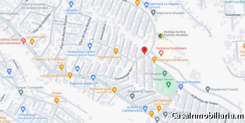 Ubicada en Privada San Antonio El, Puente, Lomas de Ahuatlán, Fraccionamiento Lomas de Ahuatlán, Morelos; entre Av. Petricholi y Tzompantle Sur, a 1 minuto de Bodega Aurrera Express Ahuatlán, a 10 minutos de Walmart Domingo Diez y a solo 14 minutos del Instituto Nacional de Salud Pública.