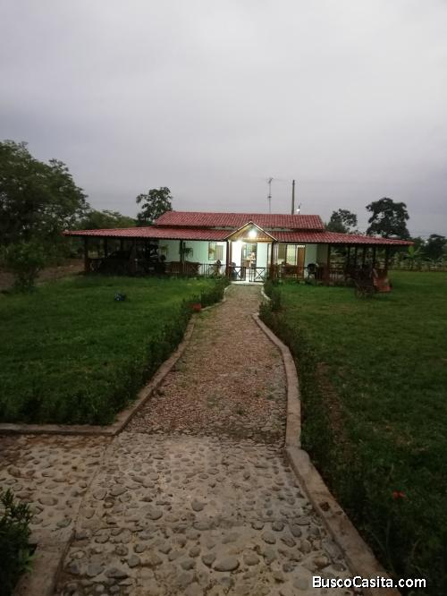 Cuenta con la seguridad privada del complejo durante las 24 horas del día durante todo el año. Descripción de la Casa Principal (180 mts2 aprox.) y Cuenta con 3 dormitorios (un máster y dos adicionales), sala, comedor, cocina - El dormitorio máster cuenta con una cama matrimonial, plasma, DIRECTV, closet amplio, aire acondicionado Split, baño privado completo, balcón con salida externa y ventana con vista al área principal de la finca. - El dormitorio adicional #1 cuenta con 1 camas de plaza y media, closet, aire acondicionado Split, ventana amplia con vista a la naturaleza. Adicionalmente el cuarto posee todas las conexiones para equipos conexiones para equipos electrónicos y tv. - El dormitorio adicional #2 cuenta con dos camas de plaza y media, closet, aire acondicionado Split baño, ventana amplia con vista a la naturaleza. Adicionalmente el cuarto posee todas las conexiones para equipos conexiones para equipos electrónicos y tv. - La sala cuenta con tres muebles de estar amplios elaborados por artesanos de la zona, una mesa central de living, adornos, plasma, DIRECTV, aire acondicionado Split. Adicionalmente existe un ventanal con salida externa a la parte principal de la casa y con protección metálica en forma de acordeón. - El comedor posee una mesa central para seis personas y un ventanal con salida externa a la parte principal de la casa con protección metálica en forma de acordeón, con aire acondicionado Split. - La cocina está dotada con un mesón multiuso de mármol cultivado, cocina a inducción 4 hornillas + horno, refrigeradora grande, lavabo, anaqueles de madera equipados con platería de cerámica, vajillas y utensilios de BBQ. – cuenta con una amplia bodega que cuenta con los equipos y herramientas para el mantenimiento de la Quinta y del terreno para sembrar. - La casa posee parqueos privados en el área frontal de la finca, en donde se pueden estacionar entre 7 y 10 vehículos. - Se cuenta con un área externa para BBQ ubicado en la parte frontal de la casa, con mesón de mármol cultivado y lavabos dobles. - La casa posee una amplia cisterna propia, agua potable, luz eléctrica, y dos pozos sépticos. Descripción del terreno - Lo más importante del terreno es que es atravesado por un canal de riego que dota de agua los 365 días del año a todo el cultivo de la finca. - Adicionalmente el terreno cuenta con un cerramiento perimetral de pilotes de concreto y alambre de púa en perfectas condiciones, proveyendo de mucha seguridad al terreno y la finca.