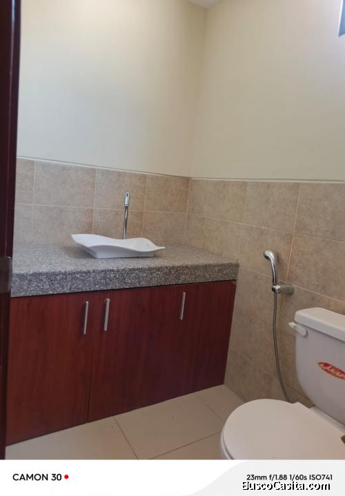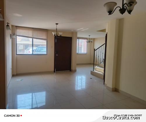 De 2 plantas, 2 habitaciones con baño cada uno y closets, área de estudio, cocina, patio y salida lateral de servicio, baño social.