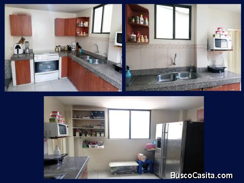 - Amplia cocina: anaqueles inferiores y superiores + elegantes mesones de granito (espacio holgado para implementar isla de cocina)