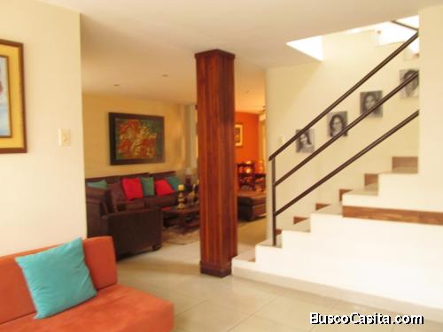 Sala ,comedor ,sala de tv con mueble hecho de madera de teca .baño social Amplia sala con anaqueles superiores e inferiores sala exterior con bar que hace que se integre el ambiente de la sala con el patio . Patio con área de bbq área de lavandería cuánto de servicio con baño completo