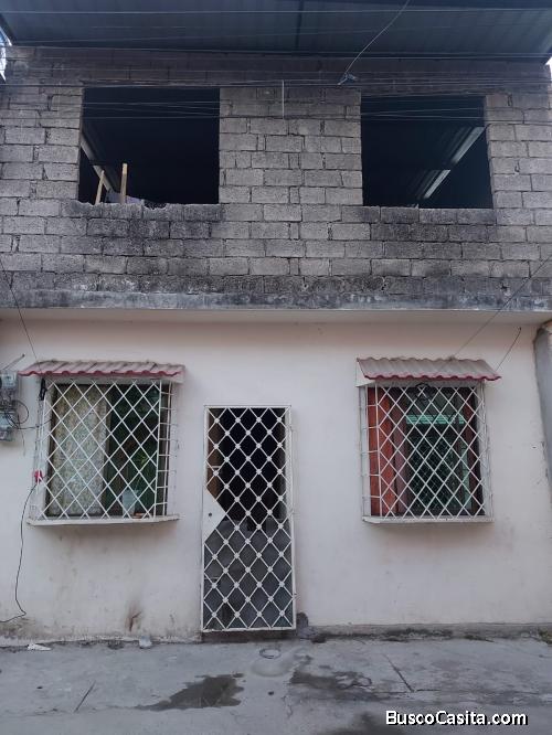 Venta de casa en el Duran Cdla El Recreo 4 etapa Manzana 423 Villa 20 en el kilometro 8 de la Vía Durán Yaguachi a 2 cuadras del Plaza Tia Duran. La casa en la planta baja cuenta con 2 departamentos independientes en donde incluye cada uno Sala comedor -Cocina -1 baño -1 dormitorios adicional la casa cuenta con cisterna de 2 metros cuadrados y tanque elevado. En el segundo piso cuenta cerramiento y techado completo, listo para la construcción tal y como se muestra en las fotos.