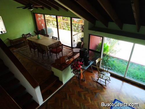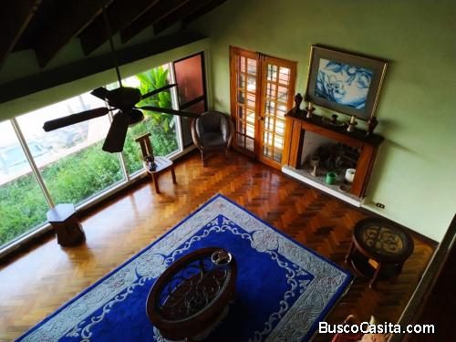 Casa en venta en Escazú cerca de la Paco, cuenta con una amplia sala con chimenea, Comedor, Terraza de luz, Baño de visitas, 2 bodegas, Terraza, Piso de madera fina de alta calidad, Cielo Razo altos con abanico, Cocina, Rancho para remodelar, Cuarto de servicio con baño, 3 dormitorios, el principal con terraza y closet, 1 baño completo.