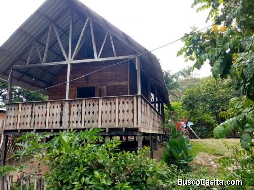 Terreno de 300 m2 con cabaña de 70 m2. (una planta más altillo). Servicios de energía eléctrica, agua potable. Pozo séptico. Un tanque elevado para agua potable. Garage. Ubicado en la cabecera parroquial de Camarones - Esmeraldas, a 15 metros de la vía principal.