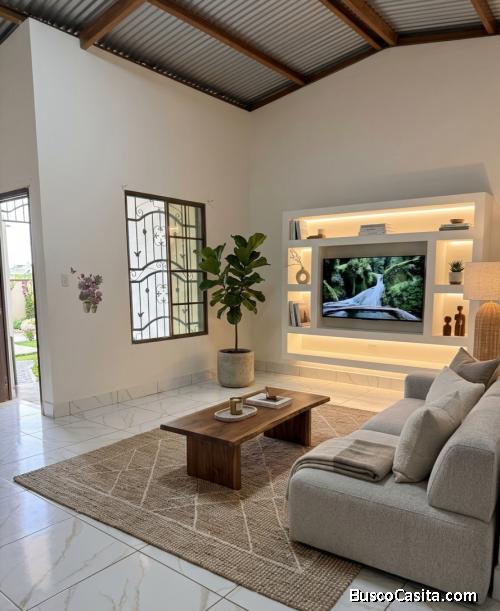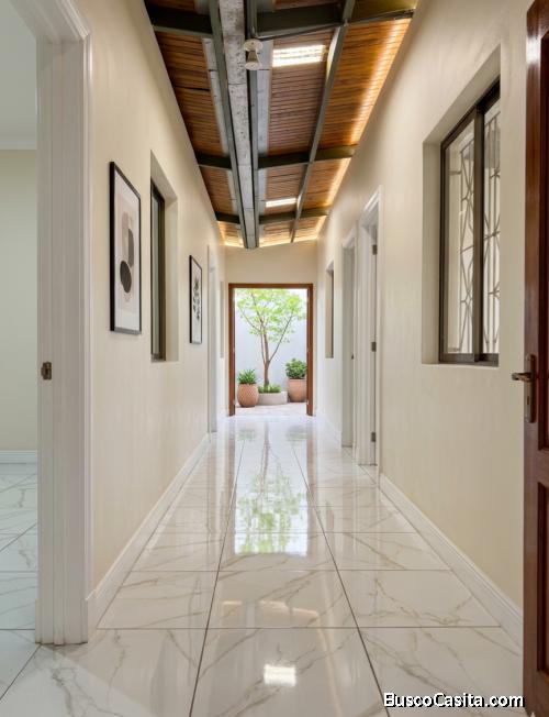 La propiedad está construida en un área de 10x30. Cuenta con 4 hermosas habitaciones, 2 baños, sala, amplia cocina, garaje techado, lavandería, bodega y patio.