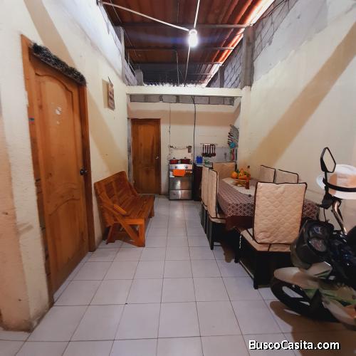 Casa en venta de una planta sismo resistente con proyección para una segunda planta, tiene escrituras y papeles al día; tiene una distribución interna de sala, comedor, cocina, lavandería, baño completo, 3 dormitorios y patio frontal con proyección de garaje; esta implantado en un terreno de 91 m2 (6.50 m x 14.00 m).