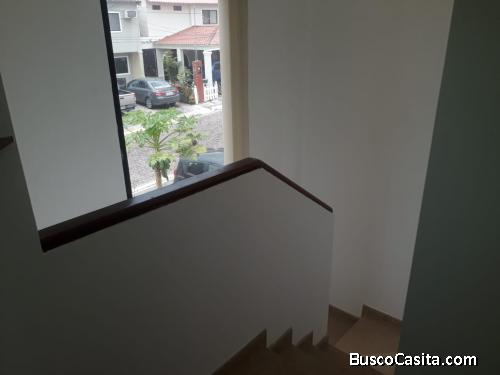 Casa de dos plantas ubicada en la Urb. privada Valle Alto etapa New York, en via a la Costa, antes del peaje Guayaquil. Casa no adosada. La urbanización cuenta con club social con canchas deportivas. Seguridad privada 24/7. en el sector de mayor crecimiento y prestigio de guayaquil (Vía a la costa), a pocos minutos de varios centros comerciales. En vía al futuro aeropuerto Chongón-Daular. Zona residencial de alta gama y plusvalia ascendente. Distribución: Planta Baja.- Garaje (3 Vehículos), Jardinera, Sala, Cuarto de infoentretenimiento, Cocina con anaqueles Altos y Bajos, Baño de visita, patio, Cuarto salón de estudio, área de lavandería y cuarto de servicio con baño Planta Alta: Habitación máster amplia y baño privado, 2 habitaciones secundarias y baño compartido. Todas con closets empotrados. Área de terreno: 160mts2 Área de construcción: 106mts2 Alícuotas: $50 mensuales Forma de pago: Contado