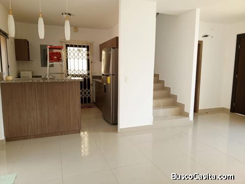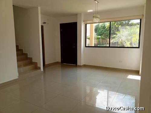 Se alquila casa via a la costa de dos plantas de tres dormitorios, el dormitorio master tiene su closet, su baño y ducha, los otros dormitorios secundarios comparten el baño y la ducha pero cada uno tiene su closet, medio baño de visita, baño y ducha de servicio, cocina americana,sala,comedor, patio de 50 metros, viene con cortinas y aires acondicionados, lamparas,parqueos para dos vehículos aparte tiene parqueos para visitantes. La urbanización cuenta con piscina para grandes y niños, cancha de futbol, área social, gimnasio, parque para niños y parque para mascota, muy pronto tendrá al ingreso de la urbanización centro comercial, ya no tienes que ir a los primeros kilómetros todos tendrás cerca.