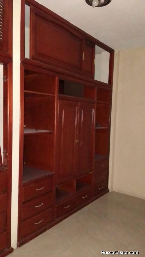 Suite independiente: 1 solo ambiente, cocina con anaqueles superiores e inferiores, dormitorio con closet, baño completo.