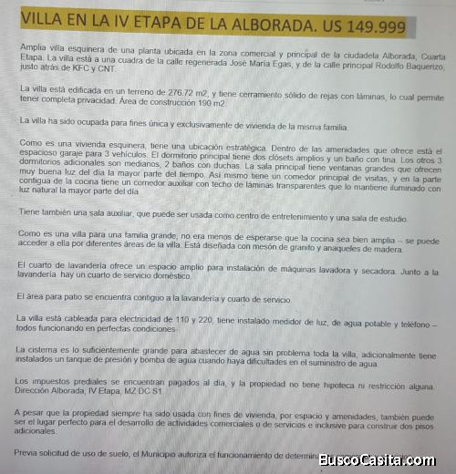 VILLA EN LA IV ETAPA DE LA ALBORADA. US 149.999