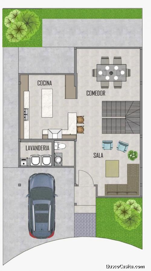Area de lavandería, garaje para 2 vehículos.