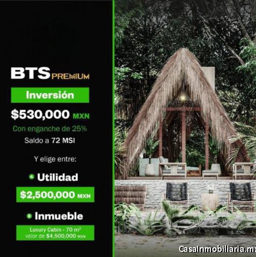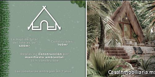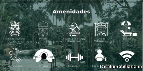 Jardín de esculturas, escenario para conciertos,torre mirador a un costado del escenario para conciertos, parque aéreo extremo, cosecha de hortalizas "organic food", área de restaurantes gourmet, beach club a la orilla de la playa, extreme park, temazcal, jungle gym, área de coworking, wifi gratuito en áreas comunes y en las cabañas, seguridad 24/7 con puntos de seguridad médica para cualquier emergencia. Terreno 400 m2, construcción 140 m2 (70 m2 cabaña, terraza, alberca propia). Inf. 5578823633 y 5585761110