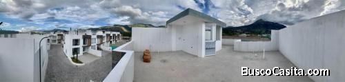 PRECIO NEGOCIABLE!!! Casa de 3 pisos, en el primer piso se encuentra la cocina, sala de recepción/espera, baño, comedor y sala, patio trasero con lavandería. En el segundo piso, 3 dormitorios (máster con baño), 2 baños, y un hall. En el tercer piso una terraza amplia, con todas las adecuaciones para construir cuartos o bbq. Cuenta con 2 parqueaderos, y forma parte del Conjunto Habitacional OLAM, frente al Parque Ciudad Blanca. La superficie total de construcción del inmueble es de ciento veinte y uno metros cuadros (121,00 m2).