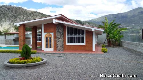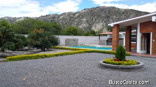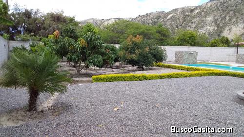 El terreno consta de 1084 mt2, en el mismo está construida una casa de 150 mt2 con tres dormitorios, sala, cocina, comedor, un baño completo. Adicionalmente tiene una piscina de 8 x 5 mtr, un área para asados, árboles frutales. Tiene acometida interna de agua de riego, cerramiento de bloque al rededor, alumbrado público.