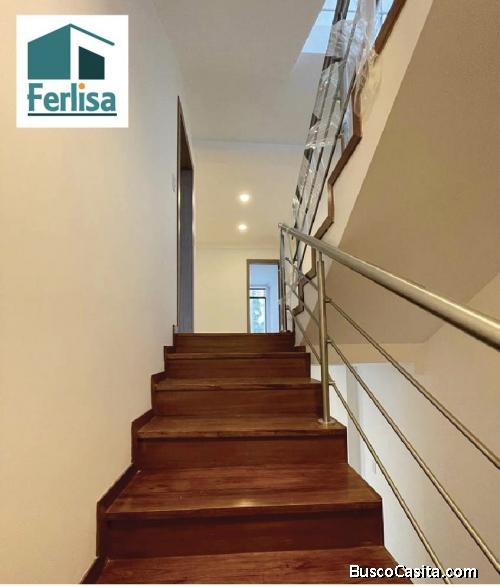 - Pisos de porcelanato español en áreas sociales, y dormitorios con piso flotante, gradas de madera.