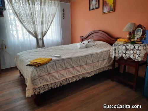La misma que consta de: un departamento de 2 dormitorios, sala, comedor, cocina un baño completo (al frente)