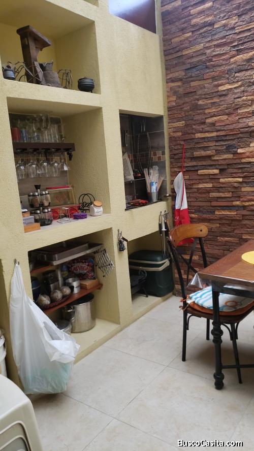 En la planta baja se tiene sala - comedor , cocina con todos los muebles empotrados y mesones de granito, encimera empotrada a gas de 5 hornillas y su respectiva campana extractora de olores, horno eléctrico empotrado, horno microondas, accesorios acerados para la colocación de especies y utensilios. Dormitorio con ventilador de tumbado y baño completo.
