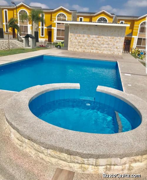 Casa por estrenar????️ ,con todos los servicios básicos elementales, agua,luz teléfono, cables soterrados,áreas verdes,salón comunal, piscinas y juegos infantiles.