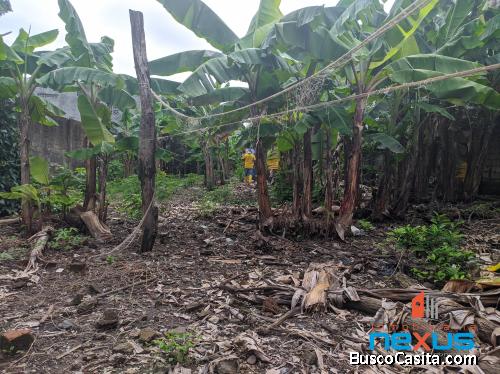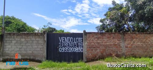 Venta lote de terreno plano, extensión total 863,03 m², con dos frentes a la calle principal y secundaria, cerramiento, posee pozo de agua, y plantaciones frutales de la zona como: plátano, maracuyá, limón, etc.