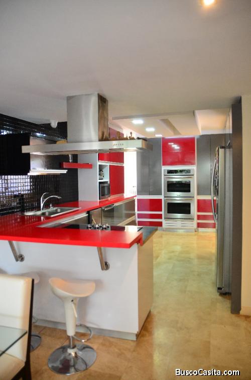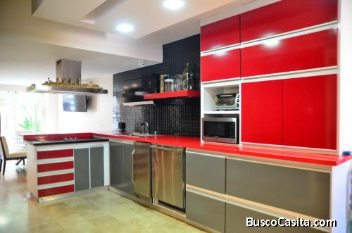• Cocina Actualizada Tope y desayunador de Silestone rojo.