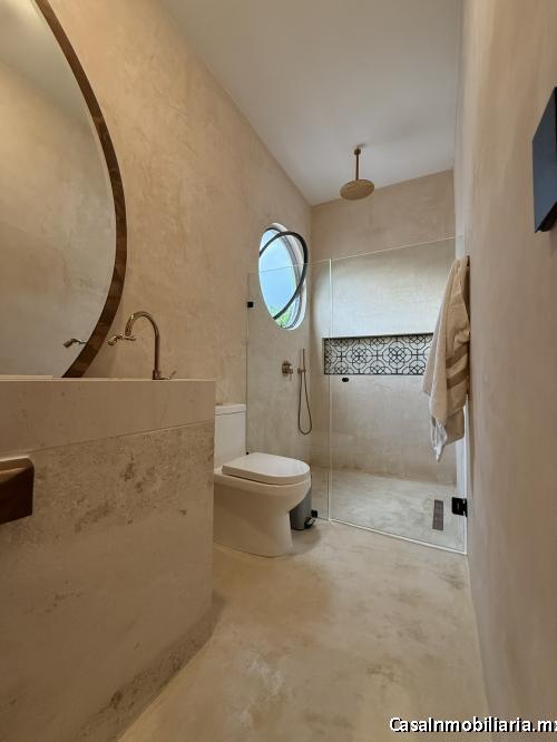 La planta alta funciona como un espacio independiente tipo departamento, con estudio, cocineta, comedor, recámara con clóset vestidor, baño completo, lavadero y terraza privada. entre sus amenidades destacan paneles solares, cámaras de seguridad, cerraduras inteligentes, aires acondicionados, ventiladores, iluminación led, tanque estacionario y acabados en madera maciza y cristal templado.