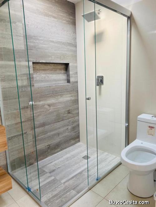 Cuenta con dos niveles, sala, comedor cocina equipada con isla alacena, jardín, área de servicio, cochera para dos autos y aljibe en planta alta tiene tres habitaciones con vestidor con closet, baño y balcón.
