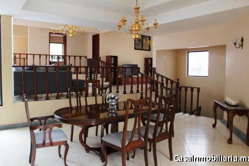 Planta Alta: 2 recámaras secundarias (una de ellas con acceso y vista al jardín principal), baño completo que da servicio a las dos recámaras secundarias, recámara principal con vestidor, baño, ducha y jacuzzi, área de T.V., baño completo para el área de juegos (con acceso al área principal) con espacio para cantina, cuarto de servicio con baño completo.
