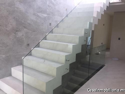 Toda la casa con excelentes acabados, cancelería en aluminio y cristal templado en escalera.