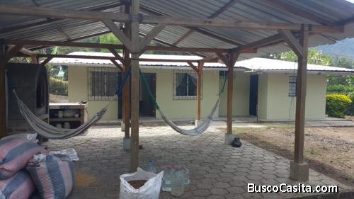 Vivienda construida en 2014, cuenta con electricidad y agua potable, el terreno dispone de un área de 1480 m2 y una linda casa de 120,5 m2 de construcción con tumbado. Consta de sala, comedor, cocina con mesón de granito y 4 dormitorios cada uno con armario empotrado, 2 cuartos de baño completos, lavandería dentro de la casa con todos los servicios básicos, además de un cuarto para bodega. En el patio hay un techado de estructura de madera y bases de cemento con suelo adoquinado, que puede ser usado como área de recreación, con horno de ladrillo. También tiene una cabaña independiente que puede usarse como alojamiento adicional.