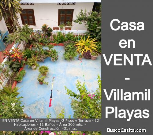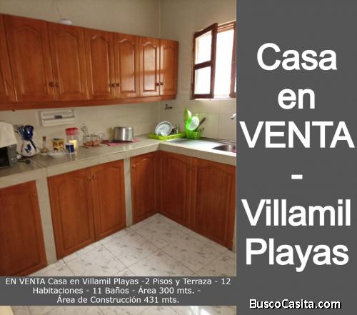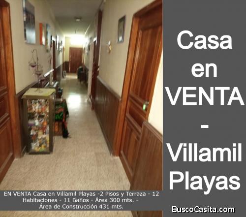 VENTA de Casa en Villamil Playas, 2 Pisos y Terraza, 12 habitaciones, 11 baños, área 300 metros, área de construcción 431 metros.