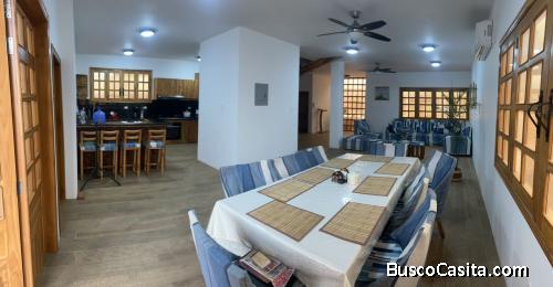 Casa de 3 pisos, 5 dormitorios en suite, con aire acondicionado, porcelanato, baños con cortina de vidrio templado, terraza en 2 y 3 pisó, sala comedor muy amplia ñ, cocina grande con muebles de madera teca y mesón de granito, cuarto auxiliar, sala